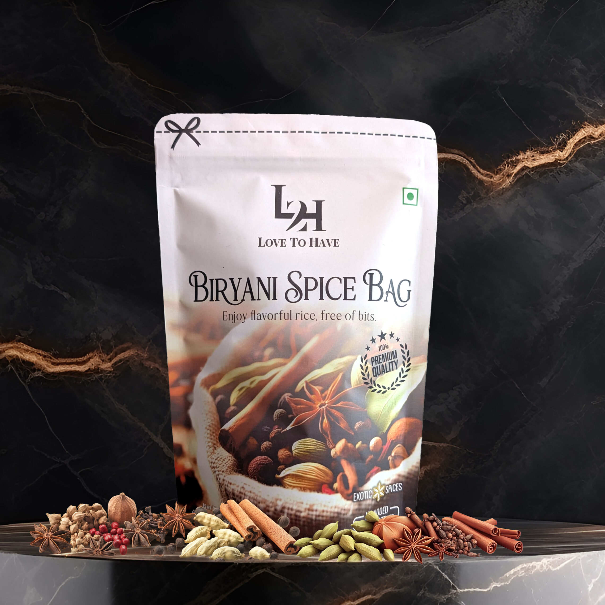 Cinnamon sticks, Cumin seeds, Black cumin seeds, Fennel seeds, Black cardamom, Kapok buds, Mace, Star anise, Peppercorns, Green cardamom, Bay leaf, Cloves.